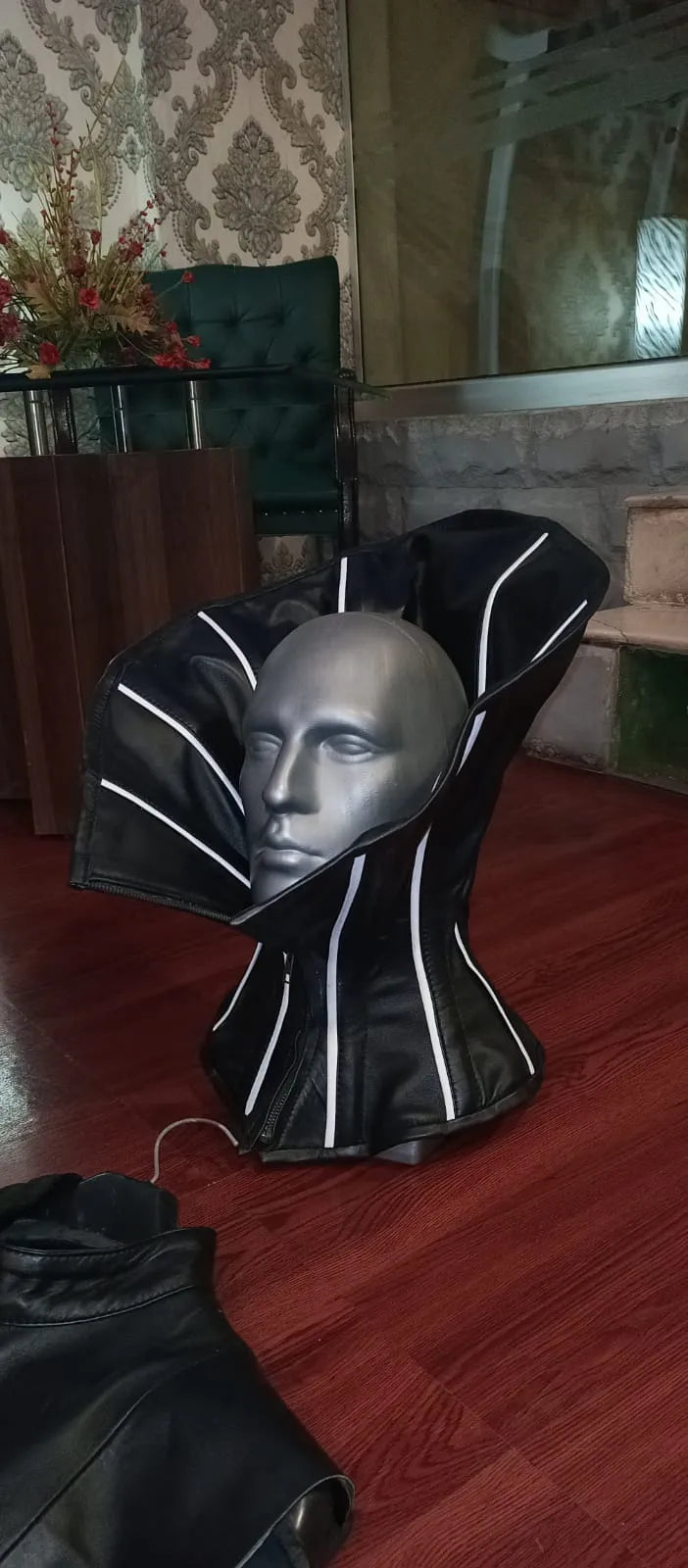 The corset is made from the finest Black lamb Napa Leather with strictly fetish Design. Corset is fully cotton twill lined and steel boned. The corset has steel, spiral and rigid bones around the grommets for reinforcement for tighter lacing.